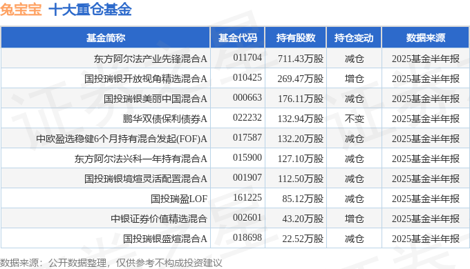 抓有兔宝宝最多的基金为东方阿尔法产业前卫夹杂A,现在边界为5.89亿元,最新净值0.5588(8月19日),较上一来去日上升0.98%,近一年上升39.75%。该基金现任基金司理为尹智斌周谧。