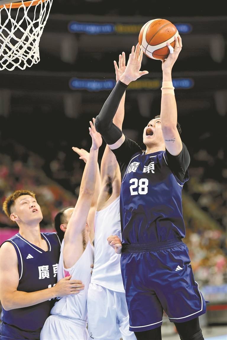 r广东男篮由杜锋引导挂帅,联结了赵睿、胡明轩、徐杰、周鹏、任骏飞、贺希宁、杜润旺、焦泊乔、李炎哲、沈梓捷、刘传兴等多名明星球员。广东男篮在本届比赛推崇亮眼,以全胜战绩为广东省代表团添上一金。